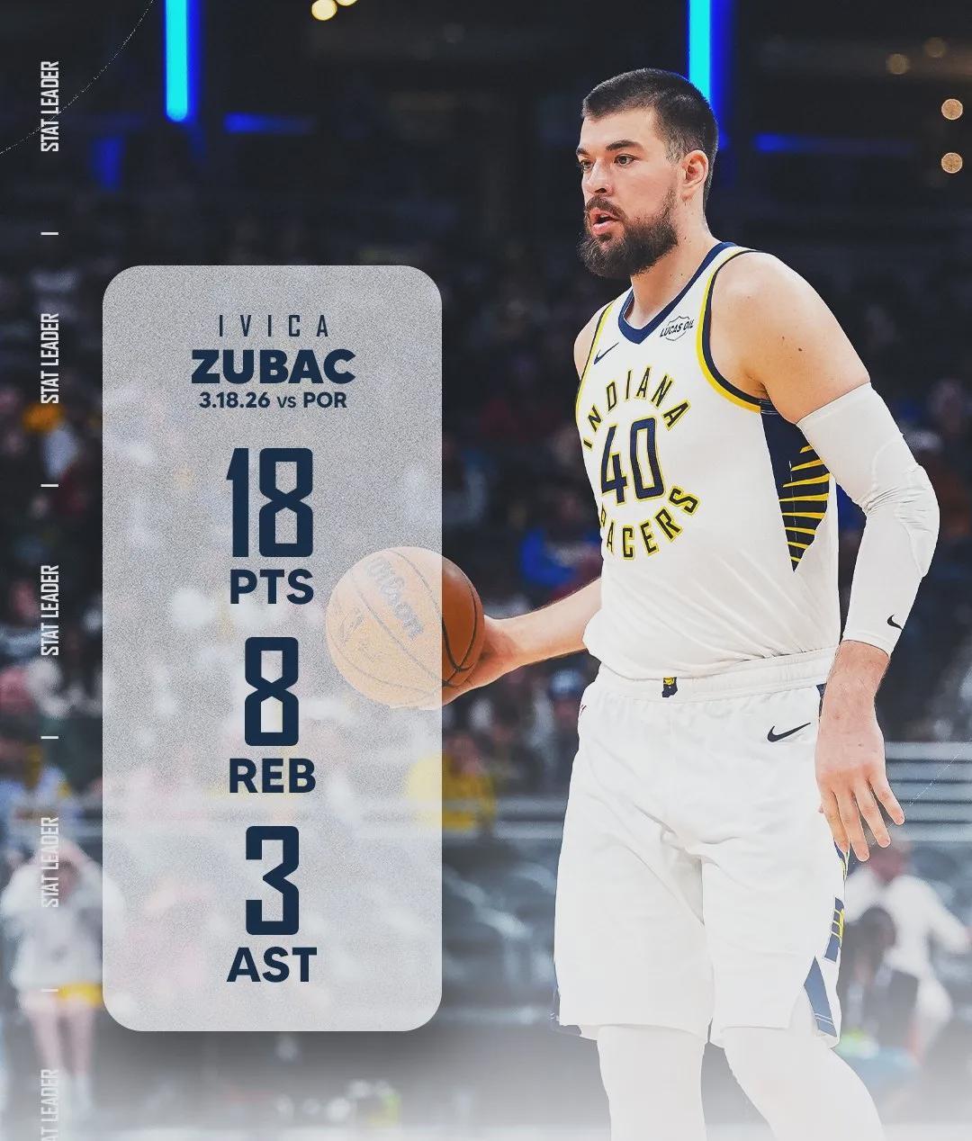 祖巴茨加盟步行者之后打了5场比赛,场均出战23.6分钟,得到11.6分7.2篮板1.8助攻0.8盖帽,投篮命中率只有47.2%。本赛季他在快船打了43场比赛,场均出战30.9分钟,得到14.4分11篮板2.2助攻0.8盖帽,投篮命中率61.3%。
