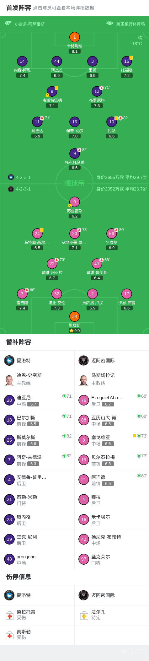 夏洛特0-0迈阿密国际,梅西缺阵,马斯切拉诺染红