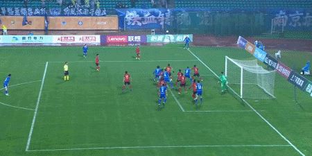 第45+3分钟,姆贝克利角球开出,泽-维托尔头球破门扳平,南京城市1-1