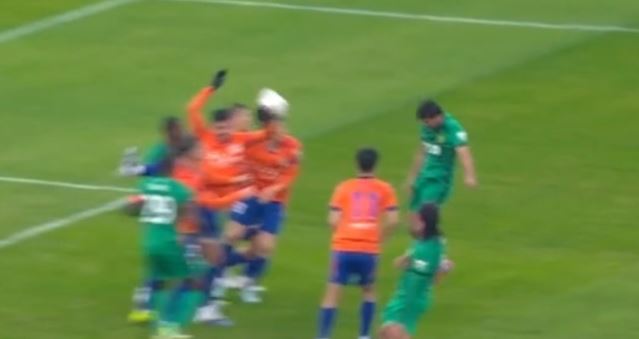 在中超第2轮,山东泰山对阵北京国安一战的第33分钟,阿卜杜海米提头球冲顶,球打在马德鲁加的手臂上,主裁判并未判罚点球,视频助理裁判也没有介入。