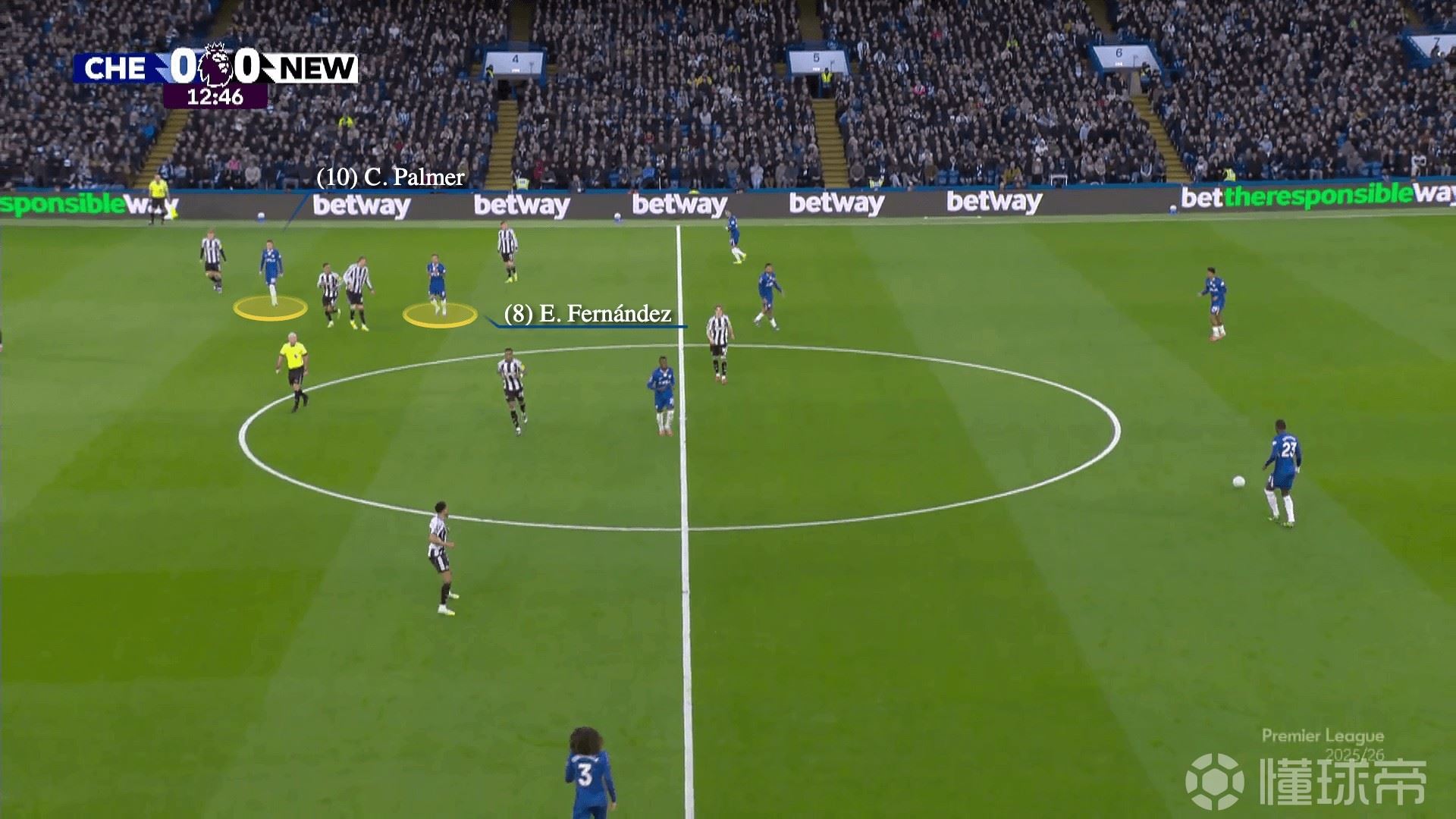 有很多像下面这样的时刻,当切尔西试图组织进攻时,费尔南德斯最终出现在了帕尔默的空间里:
