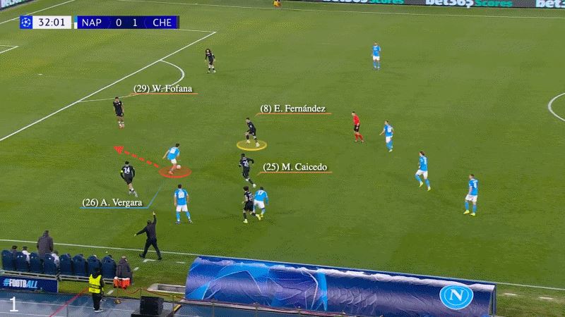 还有一月切尔西3-2战胜那不勒斯比赛中主队的首粒进球。丢球时,凯塞多被落在球前,但费尔南德斯位置正好可以封堵安东尼奥-韦尔加拉。然而他却后退了一步,大概是担心可能的传球,让韦尔加拉带球直面韦斯利-福法纳。凯塞多奋不顾身的铲球未能救险,福法纳被过,结果是进球: